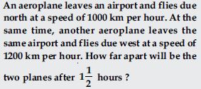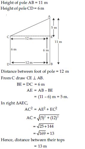 Two poles of heights 6 m and 11 m stand on a plane ground. If the distance between the feet of the poles is 12 m, find the distance between their tops.