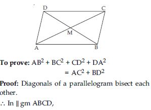 Prove that sum of squares of the diagonals of a parallelogram is equal to sum of squares of its sides.