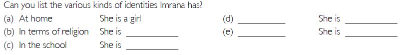 Imrana is a student of class X, section B. She and her classmates are planning to help students of class XI in giving a farewell party to the students of class XII. Last month, she played for her section team in a game of Kho-Kho against the team of Class X, section A. She goes back home in a bus and joins all the students from various classes. They all come from trans-Yamuna area in Delhi. Back home, she often joins her elder sister, Naima, in complaining against her brother who does not work at home, while the sisters are asked to help their mother. Her father is looking for a good match for her elder sister, from a Muslim family with a similar economic status from their own ‘biradari’.