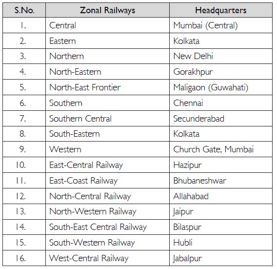 Find out the current Railway zones and their headquarters. Also locate the headquarters of Railway zones on the map of India.