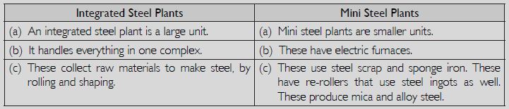 Mini steel plants are smaller units. These have electric furnaces. These use steel scrap and sponge iron. These have re-rollers that use steel ingots as well. These produce mica and alloy steel.