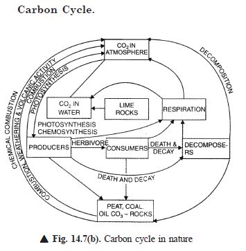 and passed to harbivores, carnivores, decomposers. About 4 × 1013 kg of carbon is