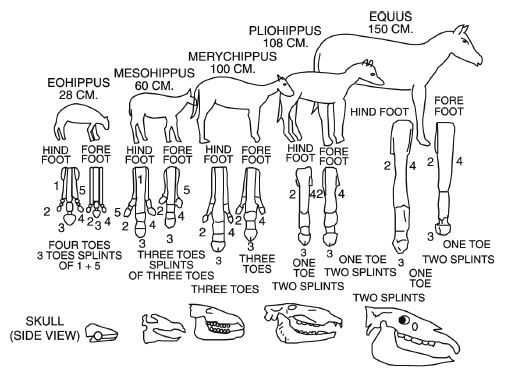 Using internet and discussing with your teacher, trace the evolutionary stages of any one animal say horse.