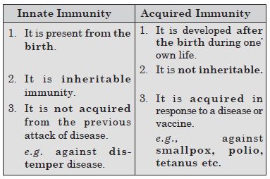 Differentiate between Innate and Acquired Immunity and give example.