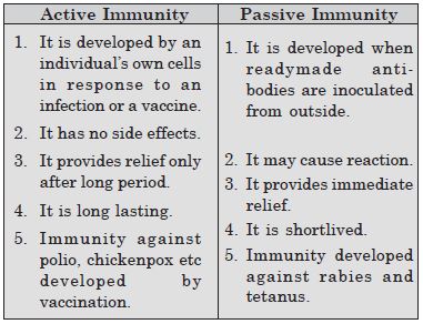 Differentiate between Active and Passive Immunity and give example.