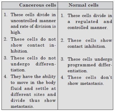 Differences between cancerous cell and normal cell