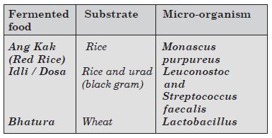 Name some traditional Indian foods made of wheat, rice and Bengal gram (or their products which involve using microbes).