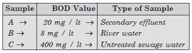 discharged from a sewage treatment plant were subjected to BOD test. The samples were