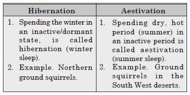 Behavioural adaptations in animals. (i) Hibernation (ii) Aestivation (iii) Periodic Activity (iv) Camouflage migration