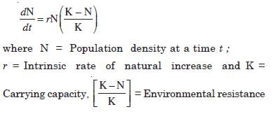 carrying capacity. A plot of N in relation to time (t) results in a sigmoid curve. This type
