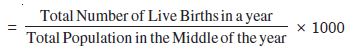 (ii) Birth or Natality rate. It is generally expressed as number or births per 1,000