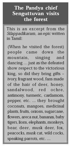 The gifts given to Pandyan Chief include things like ivory, fragrant wood, fans made from the hair of deer, honey, sandalwood, red ochre, antimony, turmeric, cardamom, pepper, etc. Except these, mangoes, coconut, medicinal plants, fruits, onions, sugarcanes, flowers, areca nut, bananas and many birds and animals were also given as gifts. Contrary to it, things produced in the village of Danguna include grass, skin of animals, charcoal, salt and other minerals, fermenting liquors, produces of khadira tree, flowers and milk.