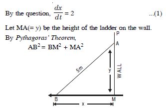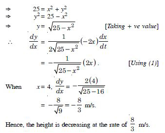 A ladder 5 m long is leaning against a wall. The bottom of the ladder is pulled along the ground, away from the wall, at the rate of 2 m/s. How fast is the height, on the wall decreasing when the foot of the ladder is 4 m away from the wall ?