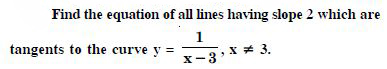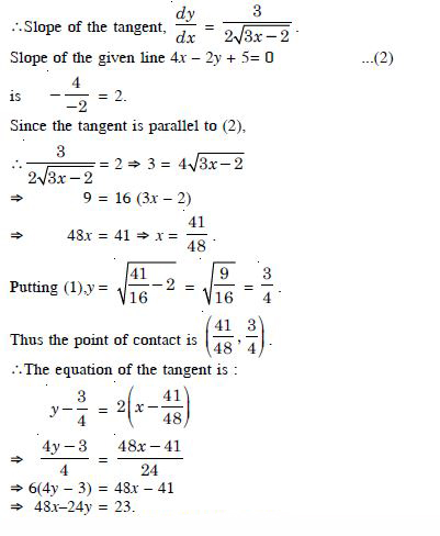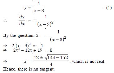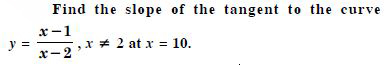 The slope of the tangent to the curve x = t2 + 3t – 8, y = 2 t2 – 2t + 5 at the point (2, –1) is :