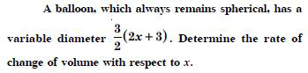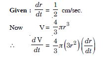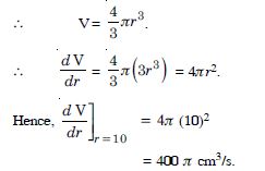A balloon, which always remains spherical has a variable radius. Find the rate at which its volume is increasing with the radius when the latter is 10 cm.