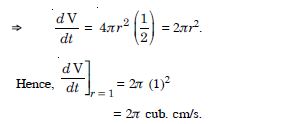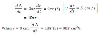 (b) When r = 4 cm, then the rate of change of the area of the circle = 2 (4) = 8 cm2/s.