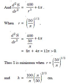 Of all closed cylindrical cans (right circular) of a given volume of 100 cubic centimetres, find the dimensions of the can which has the minimum surface area.