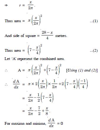 Let ‘x’ metres be made into a circle and (28 – x) metres be