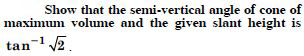 Let ‘l’ be the given slant height and ‘’ be the
