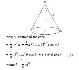 and h, height of the cone = l cos .