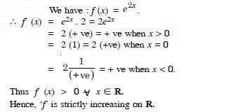 Show that the function given by f (x) = e2x is strictly increasing on R.