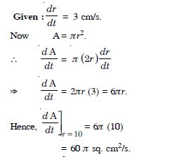 (a) When r = 3 cm, then the rate of change of the area of the circle = 2 (3) = 6 cm2/s.