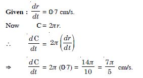The radius of a circle is increasing at the rate of 0·7 cm/s. What is the rate of increasing of its circumference ?