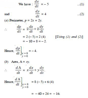 at the rate of 4 cm/minute. When x = 8 cm and y = 6 cm, find the rates of change of :