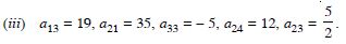 (iii) Write the elements a13, a21, a33, a24, a23.