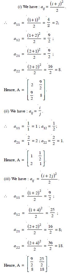 Construct a 2 x 2 matrix, A = [aij], whose elements are given by :