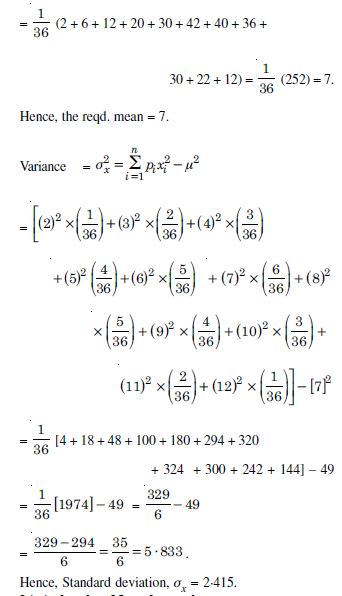 Let X denote the sum of the numbers obtained when two fair dice are rolled. Find the variance and standard deviation of X.