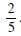 Suppose that two cards are drawn at random from a deck of cards. Let X be the number of aces obtained. Then the value of E (X) is :