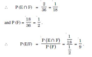 Now E be the event when the sum on two dice is 4 and F the event when the numbers apperaing on the dice are different.