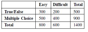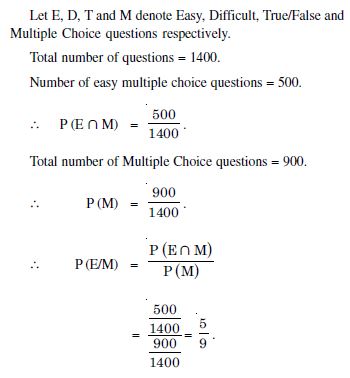 An instructor has a question bank consisting of 300 easy True/False questions, 200 difficult True/False questions, 500 easy multiple choice questions and 400 difficult multiple choice questions. If a question is selected at random from the question bank, what is the probability that it will be an easy question, given that it is a multiple choice question ?