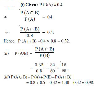 If P (A) = 0.8, P (B) = 0.5 and P (B/A) = 0.4, find