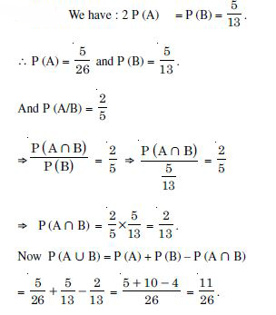 (i) P (A ∩ B) (ii) P (A/B) (iii) P (A B).