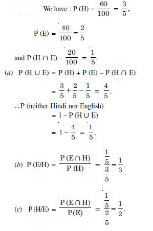 (i) P (E/F) and P (F/E) (ii) P (E/G) and P (G/E)