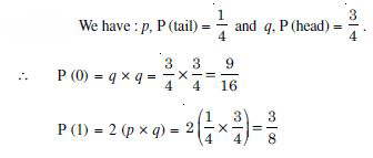 A coin is biased so that the head is 3 times as likely to occur as a tail. If the coin is tossed twice, find the probability distribution for the number of tails.