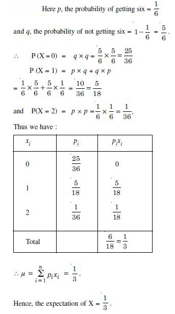 Two dice are thrown simultaneously. If X denotes the number of sixes, find the expectation of X.