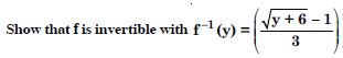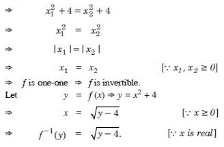 Consider R [4, ) given by f (x) = x2 + 4. Show that f is invertible with the inverse –1 f of f given by f –1 (y) =