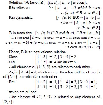 R = {(a, b) : | a – b | is even} is an equivalence relation.