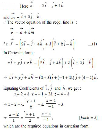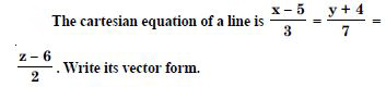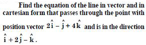 Find the vector and the cartesian equation of the line that passes through the points (3, – 2, – 5), (3, – 2, 6).