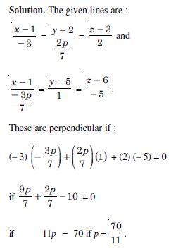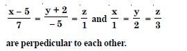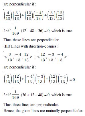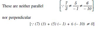Show that the line through the points (1, – 1, 2), (3, 4, – 2) is perpendicular to the line through the points (0, 3, 2) and (3, 5, 6).