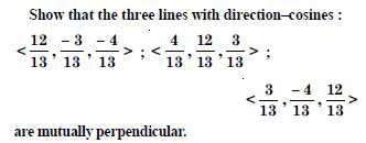 If a line makes angles 90, 135, 45 with the x, y and z-axes respectively, find its direction-cosines.