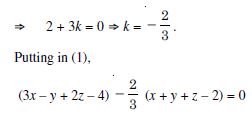 (3x – y + 2z – 4) + k (x + y + z – 2) = 0 ...(3)