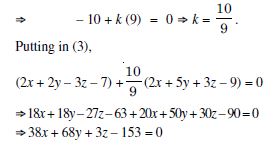 (2x + 2y – 3z – 7) + k (2x + 5y + 3z – 9) = 9...(3)