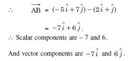 Find the scalar and vector components of the vector with initial point (2, 1) and terminal point (– 5, 7).