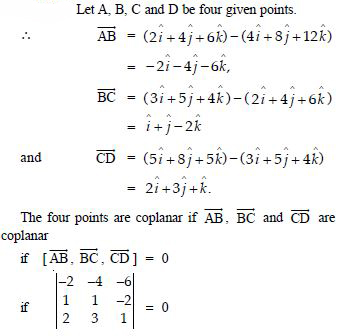 A(3, 2, 1), B(4, x, 5), C(4, 2, –2) and D(6, 5, –1) are coplaner.