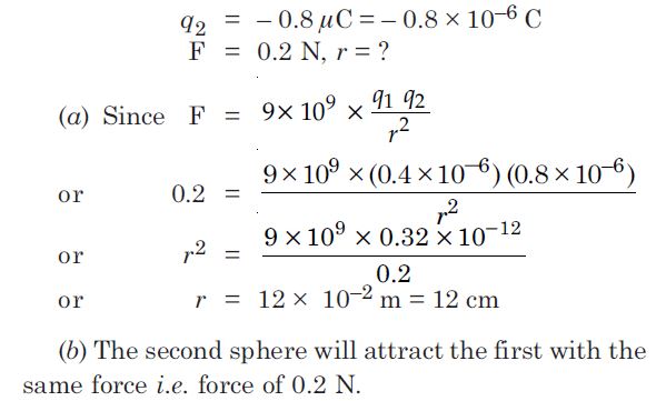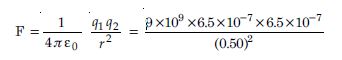 (a) q1 = 6.5 × 10−7 C, q2 = 6.5 × 10−7 C, r = 50 cm = 0.50 m