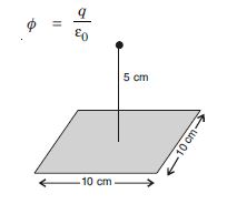 A point charge +10 C is at a distance 5 cm directly above the centre of a square of side 10 cm as shown in the figure. What is the magnitude of the electric flux through the square. [Hint. Think of the square on one face of a cube with edge 10 cm]